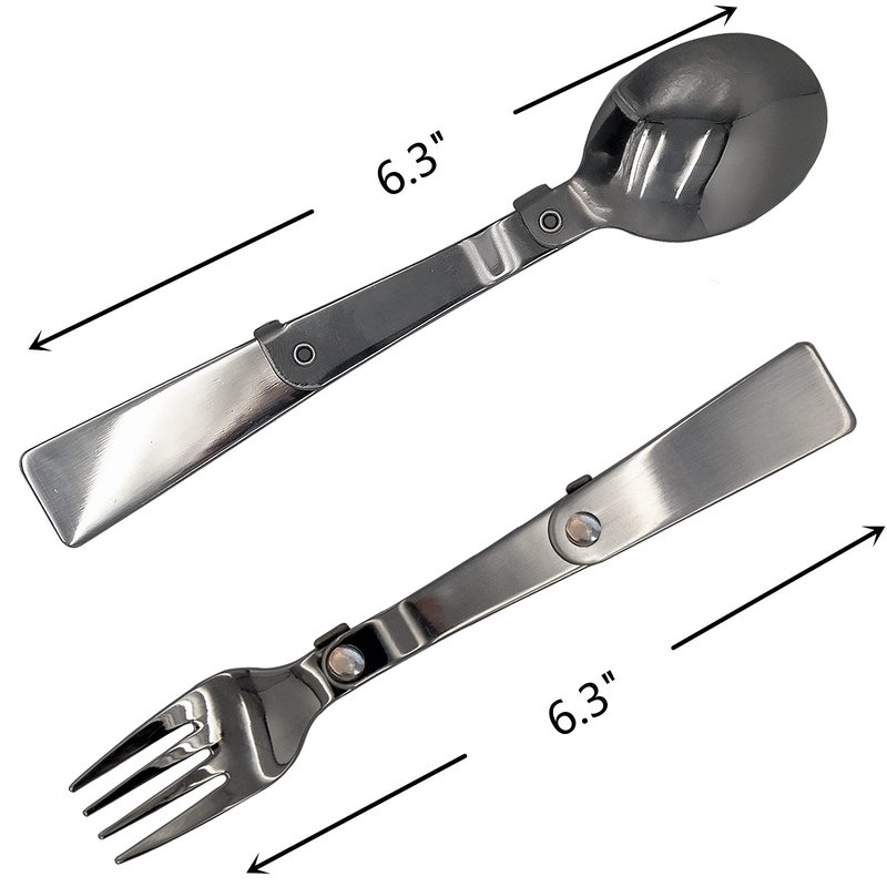 - 🍴Good Product: Set of 2 Pure high-quality stainless steel foldable spoon and fork, heavy duty and durable, hard to bend. folding spoon fork are great for everyday, holiday meal use.