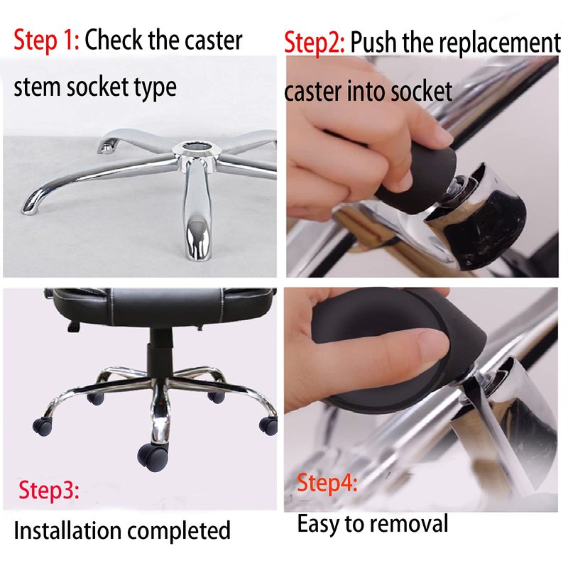 - 【EASY INSTALLATION】: Just pull out the old chair wheel and pop it out, then push the rod of the new office chair wheel into the slot until it is firmly fixed. It's like changing into a new chair.