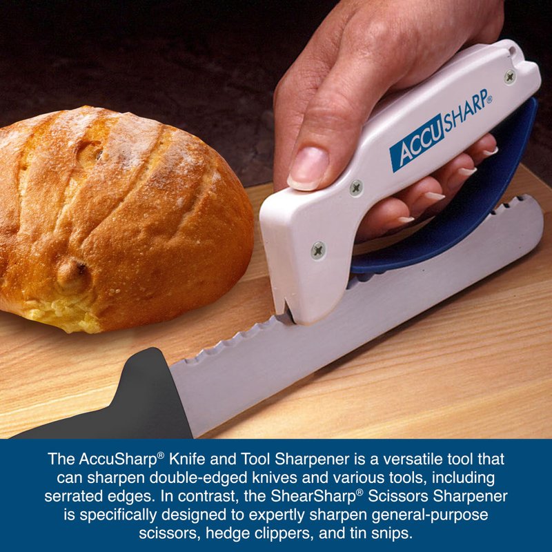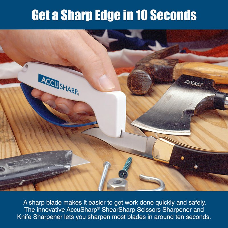 - GET A SHARP EDGE IN 10 SECONDS: A sharp blade makes getting work done quickly and safely much easier. The innovative AccuSharp Knife Sharpener restores and sharpens most blades to its sharpest condition in just a few strokes, ensuring peak performance with minimal effort.