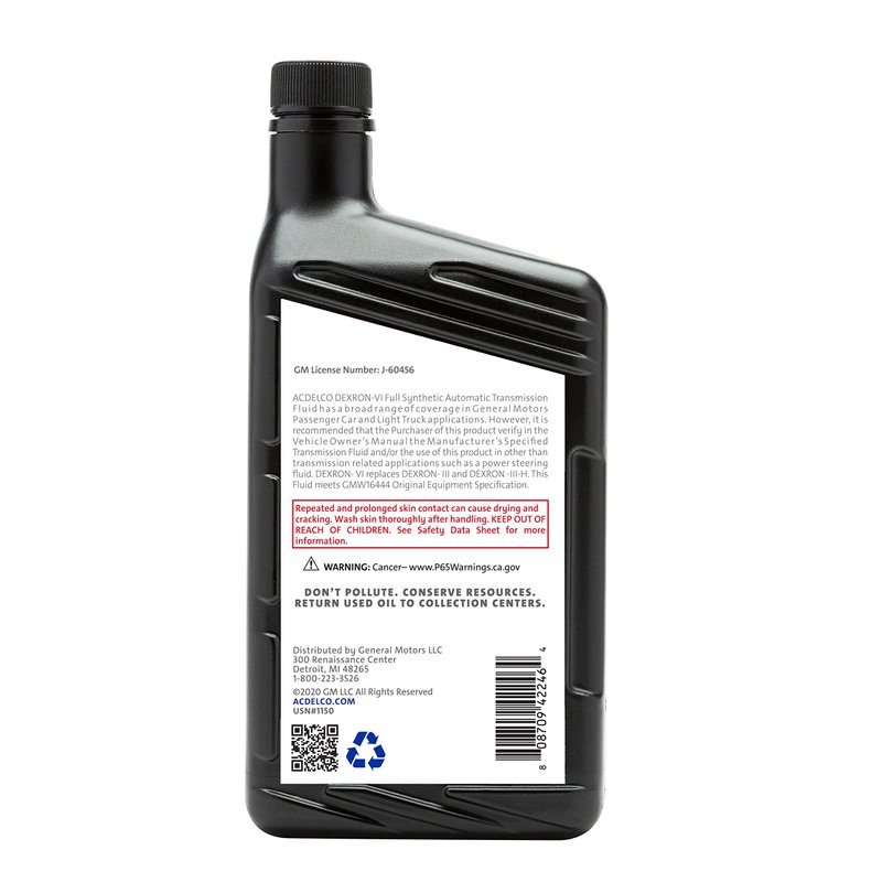 ACDelco GM Original Equipment 10-9243 (88865549) Dexron VI Full Synthetic Automatic Transmission Fluid - 1 qt (Pack of 1)