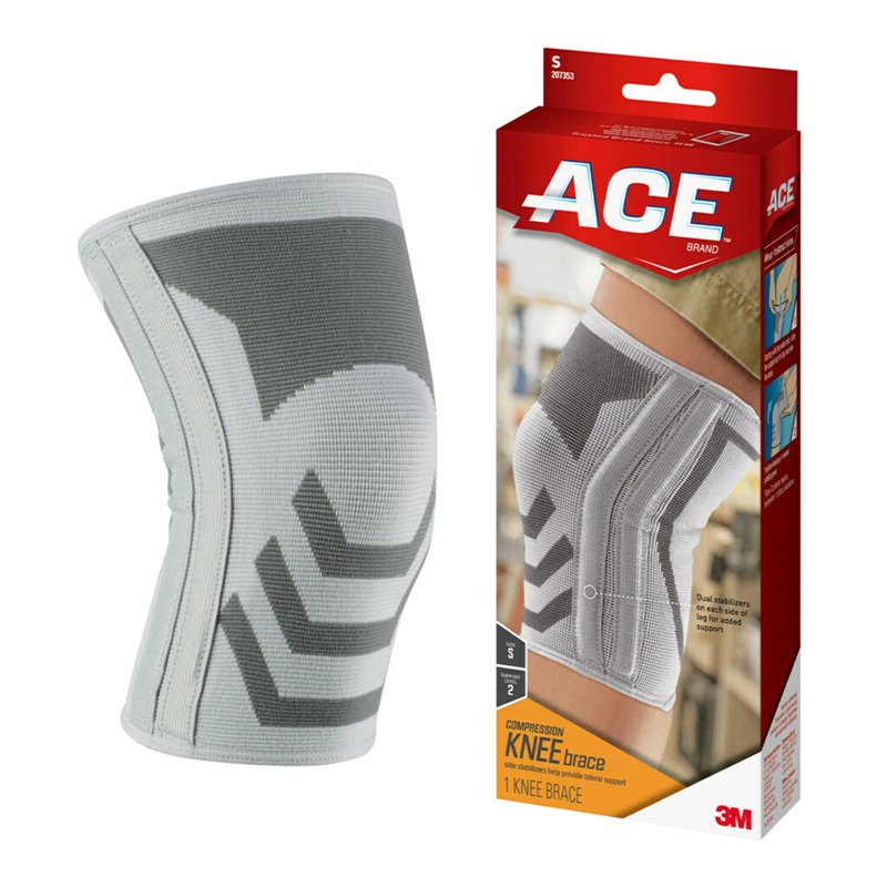 ACE Compression Knee Brace w/Side Stabilizers, Support Injured Knee With Mild Compression. Breathable Properties Let Sweat Escape, Small, White/Gray