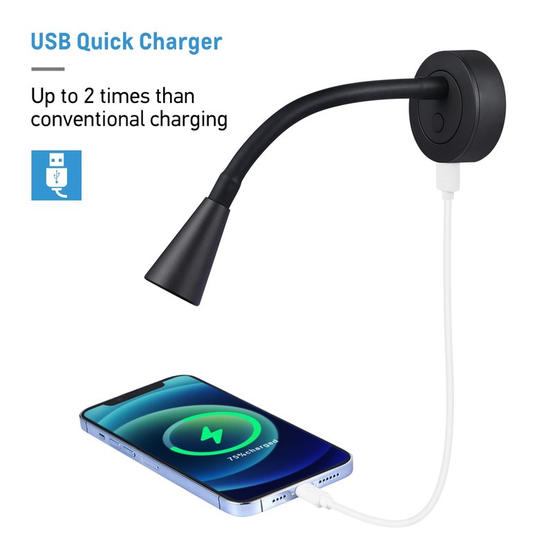 Practical - The flexible gooseneck easy to point the light for comfortable reading and USB charger offers great convenience to charge mobile devices.