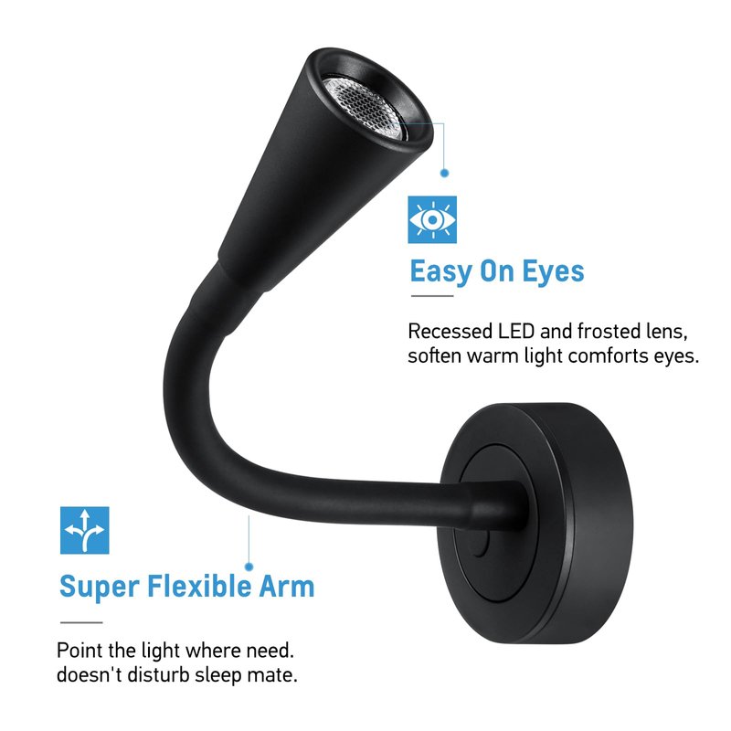 - Flexible & Directional - The lamp was equipped with flexible gooseneck, easily position in any direction to focus light on reading pages and doesn’t disturb your room mate