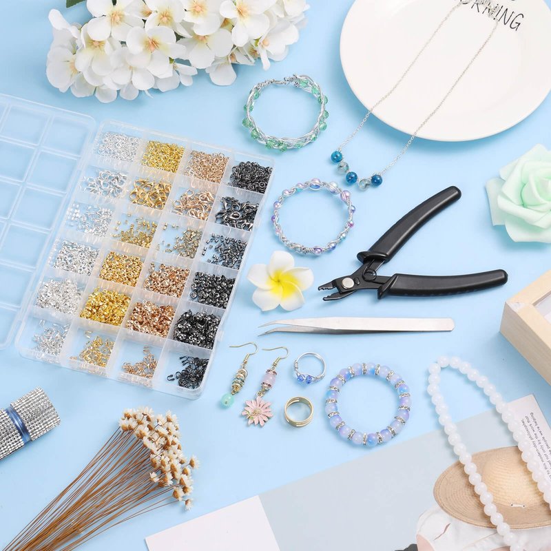 Acejoz 2160 Pieces Crimp Beads Kit for Jewelry Making, Knot Covers, Crimp Bead Covers, Crimp Tubes, Jump Rings and Wire Guardians with Crimping Pliers, Elastic String for Bracelets Necklaces Making