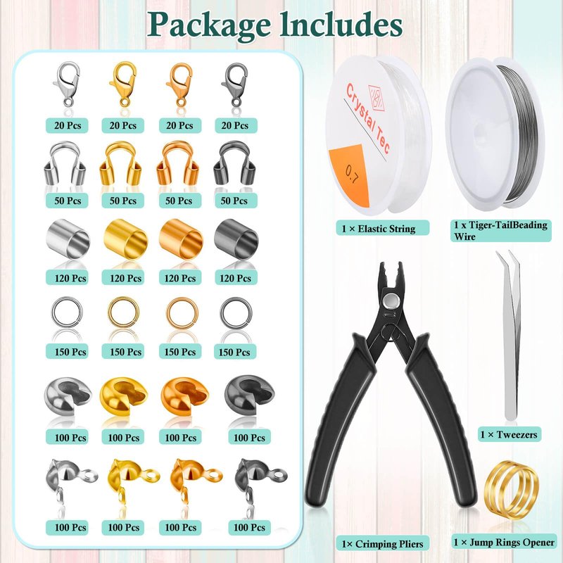 - What You Get - You will get a box of crimp beads in 4 colors, including 480 pieces brass crimp tubes beads(120 pieces of each color), 400 pieces crimp bead covers(100 pieces of each color), 400 pieces knot covers(100 pieces of each color), 200 pieces wire guardians(50 pieces of each color), 600 pieces jump rings(150 pieces of each color), and 80 pieces lobster clasp(20 pieces of each color), 2,160 in total, sufficient amount can meet your different needs of jewelry making