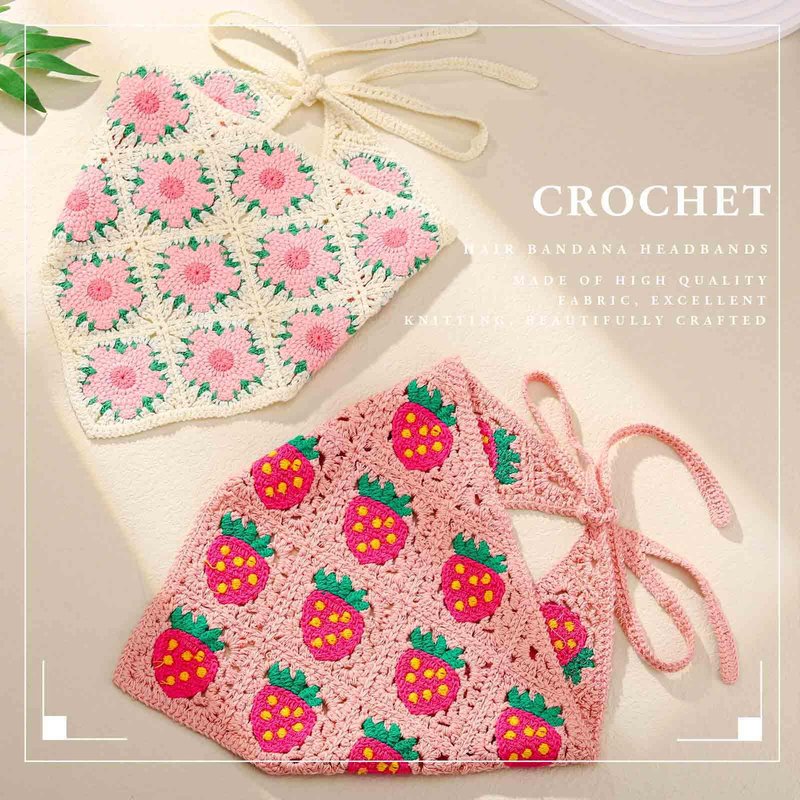 About Crochet Head Bands for Women We are devoted to designing head bandana,headband scarf,boho bandana,hair scarf for women,head scarves,women’s head scarf,crochet headband,headscarf for women's hair,scarf headbands for women,cute bandanas for women,kerchief for women,headband scarf for women. Features on Scarfs Headband for Women Headbands scarf is non-slip, it is recommended to add bobby clips to keep it in place better, so you can enjoy the summer without worrying about the wind messing up your hairstyle. Crochet bandana for women with earrings,sunglasses, bracelet and other bohemian or cottagecore accessories, can make your look more gorgeous and dazzling, and receive more compliments. Head scarves for women absorb sweat and keep you cool in hot weather. The length is long enough to cover your hair and can withstand hot weather, sunshine and more. Bandanas for women are suitable for when you don't know how to style your hair or when need to dress up in a pinch. Definitely adds some flair to the look and makes you the center of attention in the crowd. Hair scarf is suitable for short hair, curly hair, thin hair, thick hair, bun, ponytail, updo or down hairstyle, thick wavy hair, long hair , fluffy hair, straight hair , and so on various hairstyles. Womens bandana are the wonderful addition to casual, dressy,dresses, summer outfits, off-shoulder tops, skirts , puff sleeve blouse, Halloween costumes. The simple openwork floral knit design of the headscarf with cute strawberry and flower elements creates a summer feeling. Notice Bandana headband is recommended to be hand washed If machine washing, please put the headband bandana into a laundry bag first. There may be slight differences in colors due to different screens. Head bandana for women's hair may have a difference of 0.4-0.8inches (1-2cm) because of manual measurement, Please do not pull the floral headband for women too hard to avoid damage.