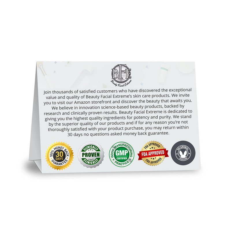 - ✅Join thousands of satisfied customers who have discovered the exceptional value and quality of Beauty Facial Extreme’s skin care products. We invite you to visit our Amazon storefront and discover the beauty that awaits you. Beauty Facial Extreme's products work, and they work extremely well. We stand behind our products 100%, with a guarantee of significantly transforming your skin to achieve healthy and more vibrant skin. Order Now, 30 Day Money Back Guarantee.