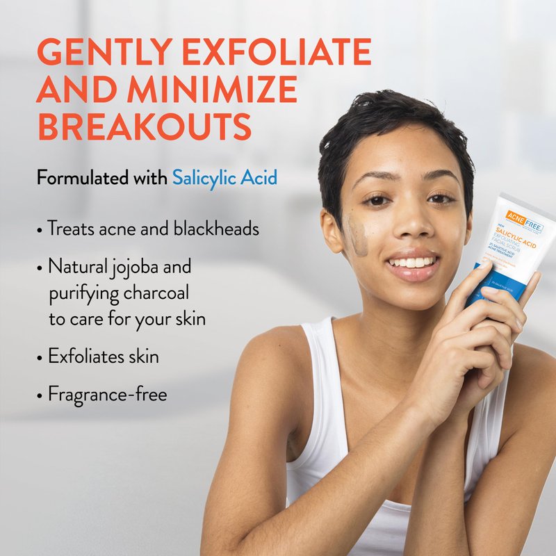 Acne Free Salicylic Acid Exfoliating Face Scrub, 2% BHA Blackhead Remover & Acne Treatment, Deep Cleanse with Charcoal & Jojoba Beads, Gentle Exfoliation with Ginger & Oats, 5 Ounce