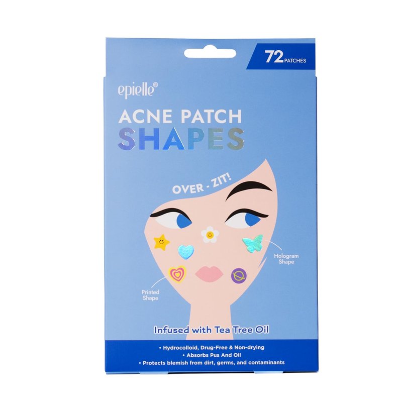 - Variety Pack: This set includes 72 acne patches in assorted fun shapes, including printed designs and hologram shapes.