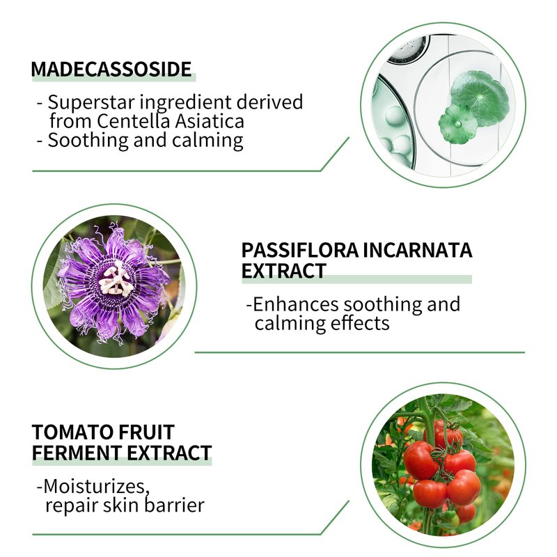 - ð¿ãSoothing and CalmingãMadecassoside, a superstar ingredient derived from Centella asiatica, together with passion flower extract and tomato extract, helps to soothe and calm the skin and repair the skin barrier.
