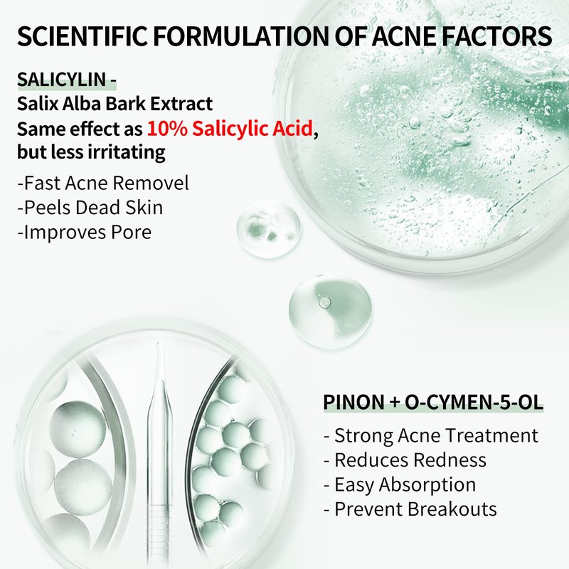- ð¿ãSuperior Acne TreatmentãSalicylin, same effect as 10% Salicylic Acid, but less irritating, especially with the highest content of salicin in salix alba(willow)bark ectract, can quickly get rid of acne pimples, exfoliate dead skin and improve pores.