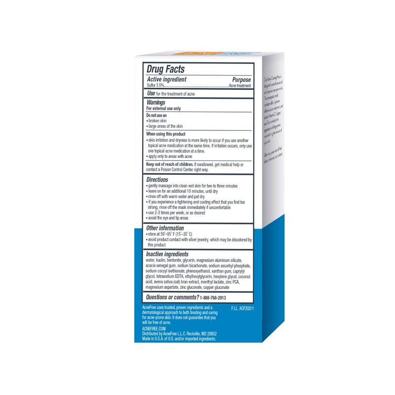 AcneFree Acne Clearing Mask, 3.5% Sulfur Acne Treatment, Absorbs Excess Oil and Unclogs Pores with Vitamin C, Bentonite, and Zinc, 1.7 Ounce