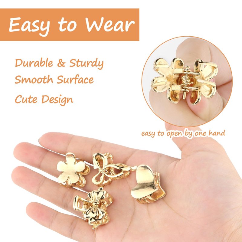 ACO-UINT 12 Pcs Small Hair Clips for Women, Gold Hair Claw Clips Sturdy Mini Metal Claw Clips, Cute Clips for Hair 90s Hair Accessories for Women and Girls