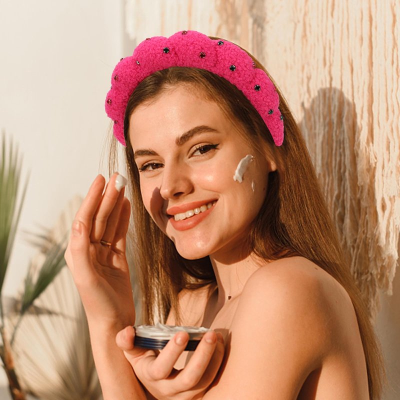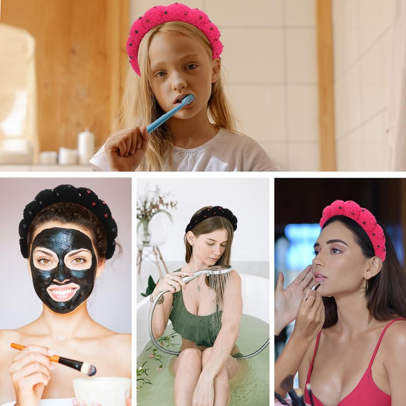 - Soft Material: These skin care headbands are made of premium lamb wool and sponge, and adorable clouds shape design inlayed with sparkly rhinestones. The edges of the bubble headbands are soft, and won't hurt the back of your ears.