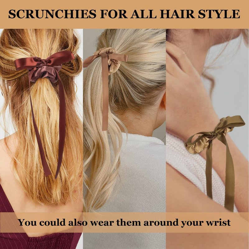 - Durable to Wear: These hair ribbons for women are made of premium silk satin fabric, very comfortable and sturdy to wear. This package includes 6pcs bow scrunchies with kinds of color, it give you many options to match with your daily outfits.