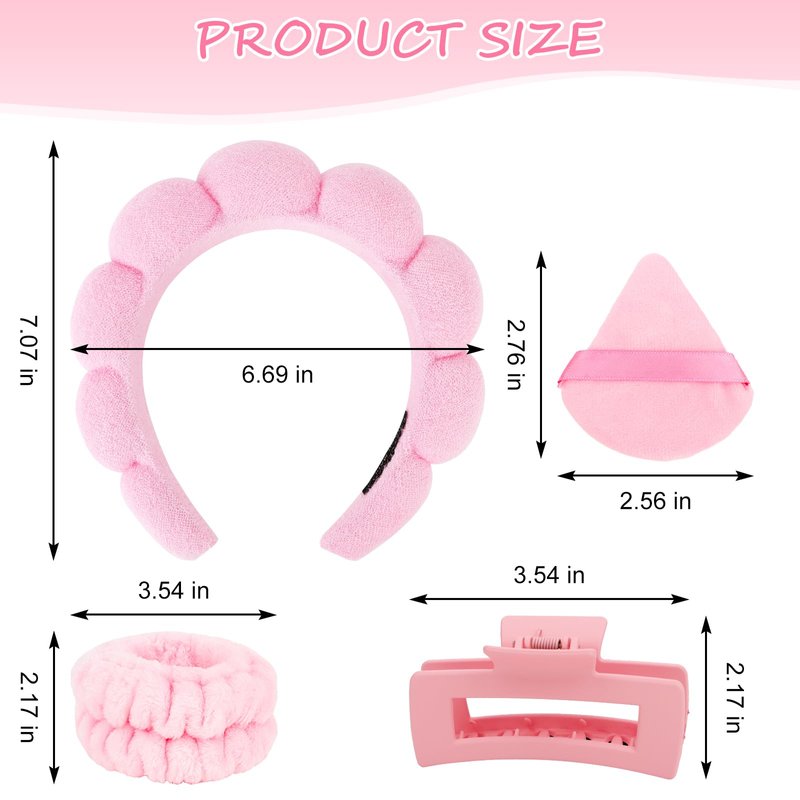 - Practical Combination: This Package include 1pcs terry cloth puffy headband, 1pcs square hair clip and 2pcs powder puffys for women that perfect to keep your hair out of your face; another 2pcs wrist bands for washing face make no dripping down your arms.