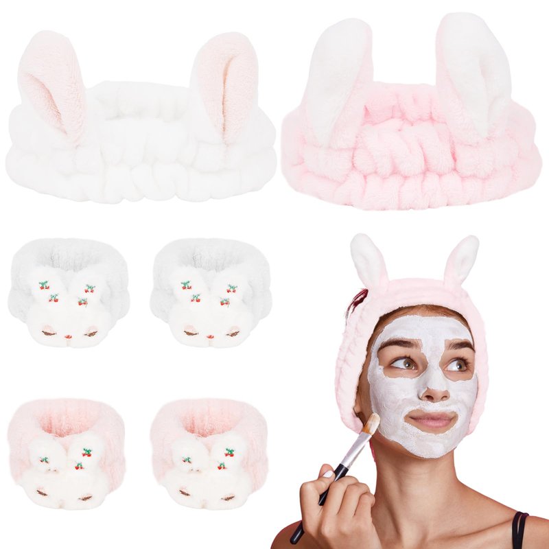 - Cute and Soft: These makeup hair headband and spa wristbands for washing face with rabbit design are made of premium coral fleece, which are very cute and comfortable to wear.