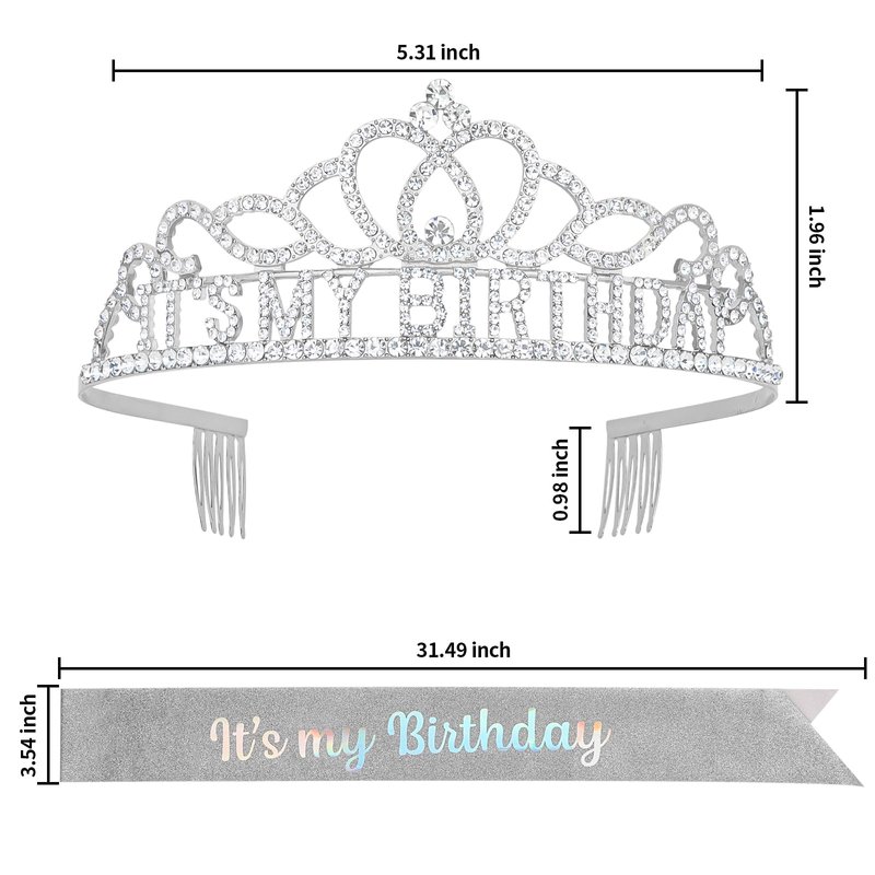 ACO-UINT Birthday Crown for Women, Silver Birthday Headband Birthday Sash It's My Birthday Crown, Birthday Girl Crown Birthday Tiara Birthday Decorations Birthday Gifts