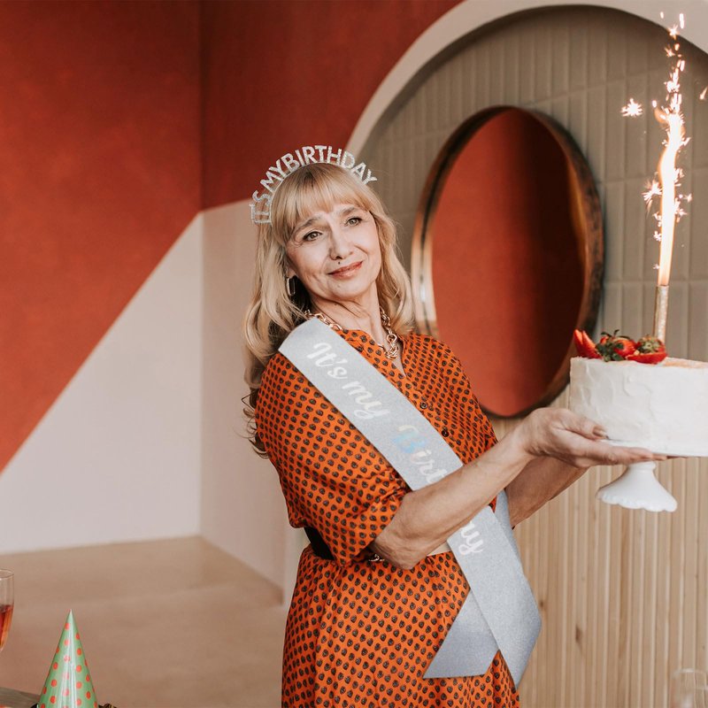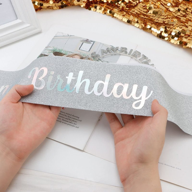 ACO-UINT Silver Birthday Crown for Girls, Cute Birthday Sash & Birthday Tiara for Women Set, Sweet Birthday Headband Birthday Decorations Birthday Gifts for Women