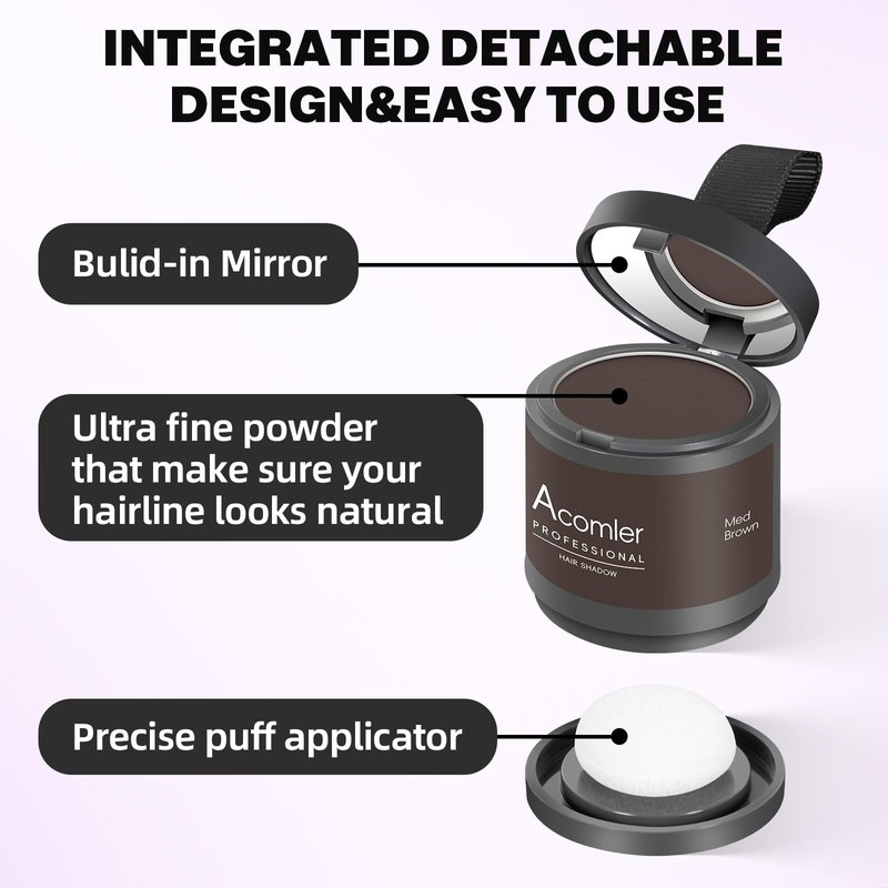 - 1.Instant Coverage Quickly Hair Root Touch Up -Acomler Hairline Powder puff can accurately cover the roots of hair. Locks on Until You Shampoo: Hair loss? Skip the embarrassing all-day touch-ups .The color is firm. Make the hair fluffy. Will Makes hair color natural and vibrant. Great for all hair types and texture!