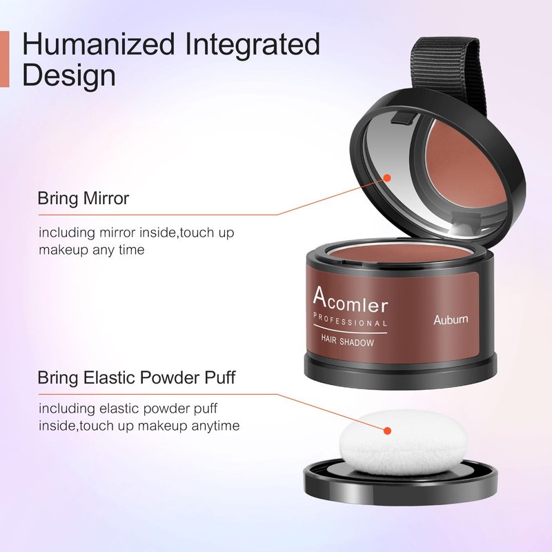 - 1.Instant Coverage Quickly Hair Root Touch Up -Acomler Hairline Powder puff can accurately cover the roots of hair. Locks on Until You Shampoo: Hair loss? Skip the embarrassing all-day touch-ups .The color is firm. Make the hair fluffy. Will Makes hair color natural and vibrant. Great for all hair types and texture!