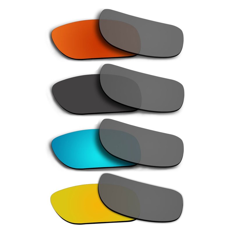 - 4 Pair Lenses - Fire Red Mirror Coating | Black | Ice Blue Mirror Coating | Gold Mirror Coating. This Lenses Only Fit Oakley Holbrook Sunglasses. If you are not sure, please search the SKU # which is marked on your frame. (Fit SKU: OO9102)