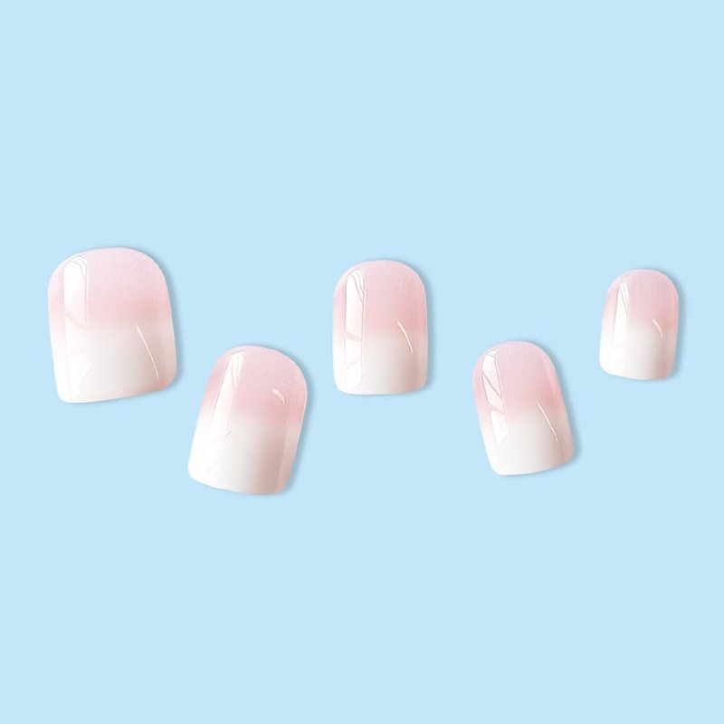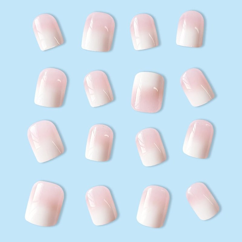Acrylic Press on Nails Short Square Fake Nails White Ombre Glue on Nails Short False Nails with Gloss Designs Nails Press on Artificial Nails Stick on Nails for Women 24Pcs