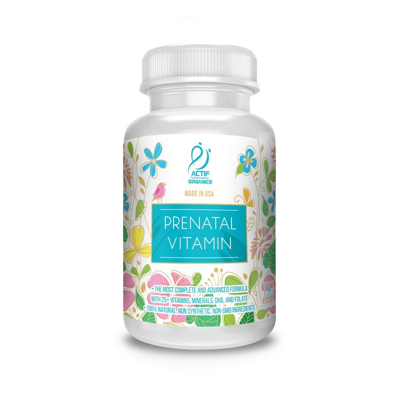 Actif Organic Prenatal Vitamin with 25+ Organic Vitamins, 100% Natural, DHA, EPA, Omega 3, and Organic Herbal Blend - Non-GMO, 90 Count