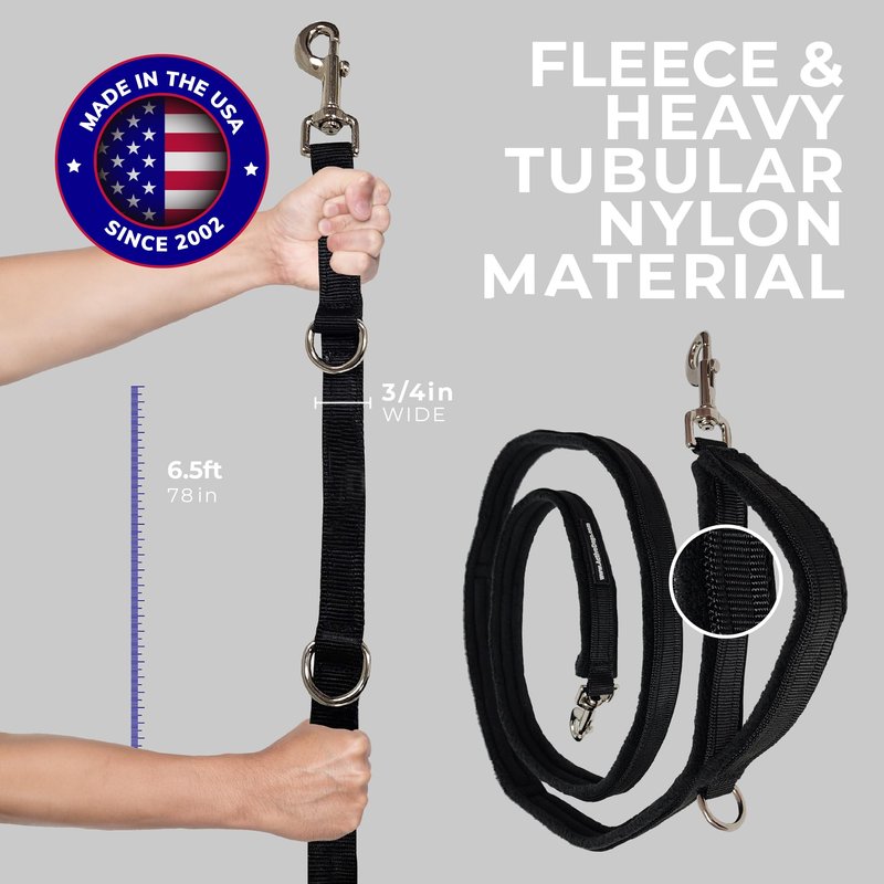 - Durable Quality Made in the USA - Crafted with 3/4" wide double-stitched nylon, whilst lined with comfortable fleece means that this leash guarantees exceptional durability, longevity, and comfort. Proudly made in the USA, this high quality wearable dog leash. It's ideal for everyday use, rigorous training sessions and suitable for all dogs