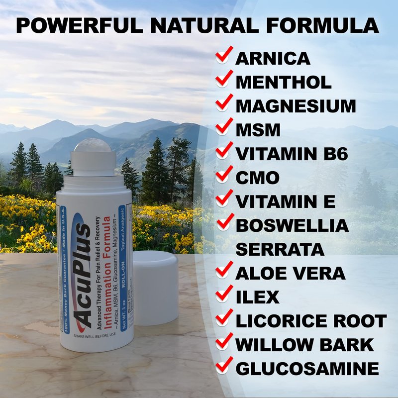 - 💧 EASY TO APPLY: Experience the convenience of AcuPlus with its non-greasy, fast-absorbing formula that leaves no residue or stains. Perfect for application at home, work, or on-the-go, AcuPlus provides bursitis treatment and arthritis pain relief roll-on with ease and efficiency, ensuring you can continue your day without interruption.