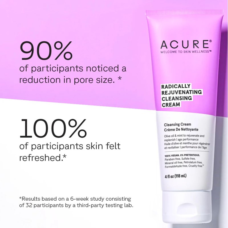 Acure Radically Rejuvenating Cleansing Cream - Foaming Creamy Facial Cleanser - Moisturizing Benefits of Olive Oil, Cocoa Butter and the Soothing Deep Cleanse of Mint - 4 oz