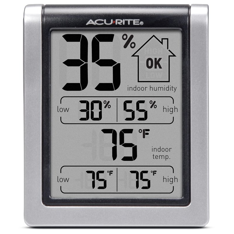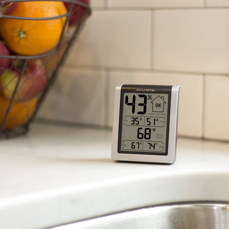 AcuRite 00613 Digital Hygrometer & Indoor Thermometer Pre-Calibrated Humidity Gauge, 3" H x 2.5" W x 1.3" D, Black