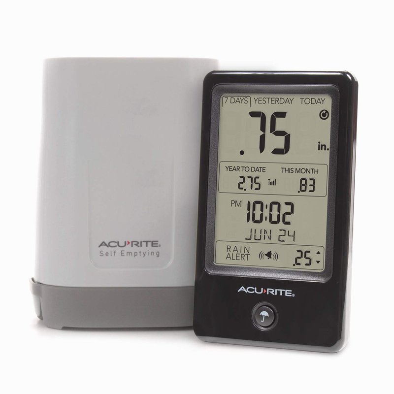AcuRite 02446M Wireless Rain Gauge with Indoor Digital Display, Black