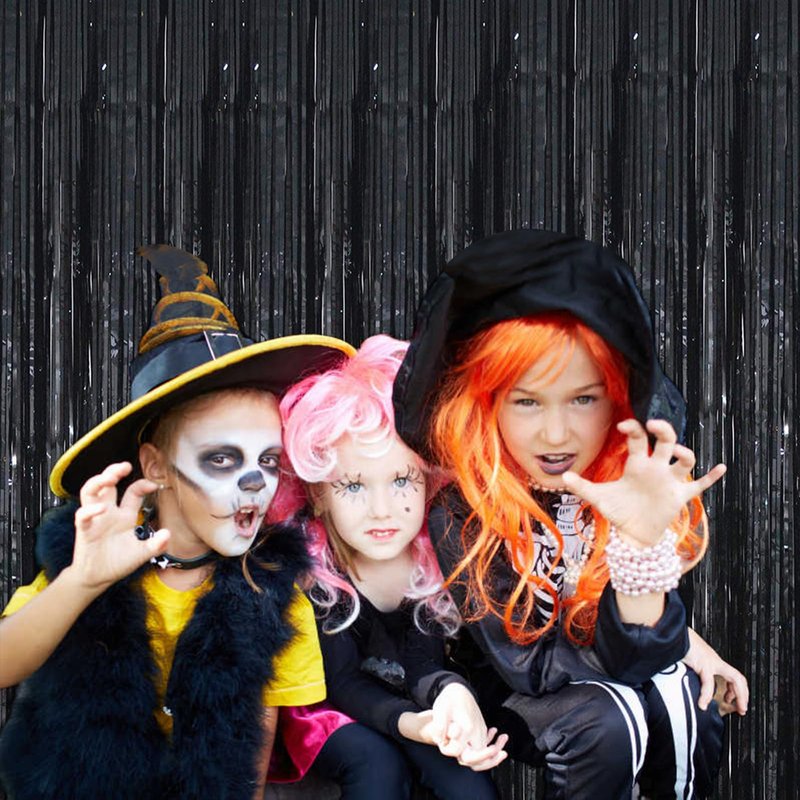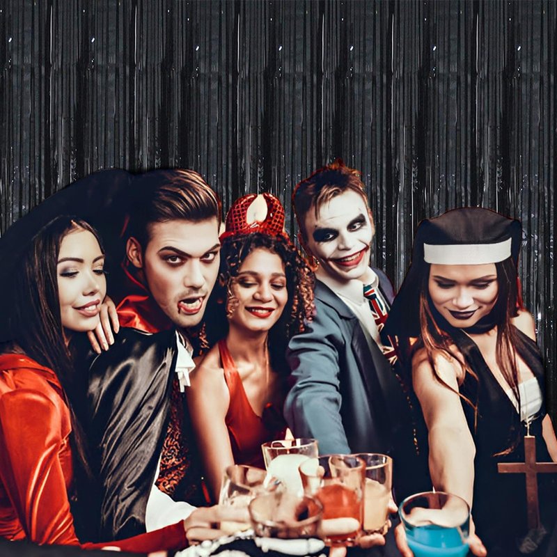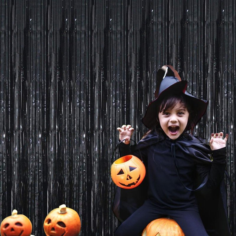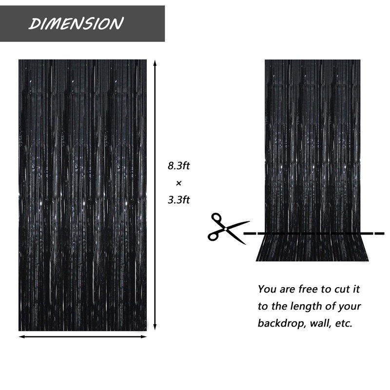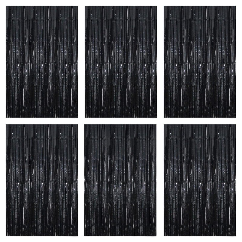 Acuteye Black Foil Fringe Curtain 3.3×8.3FT 6 Packs, Metallic Tinsel Curtains Party Streamers for Birthday Graduation Baby Shower Decoration (6pcs,3.3FT×8.3FT, Black)