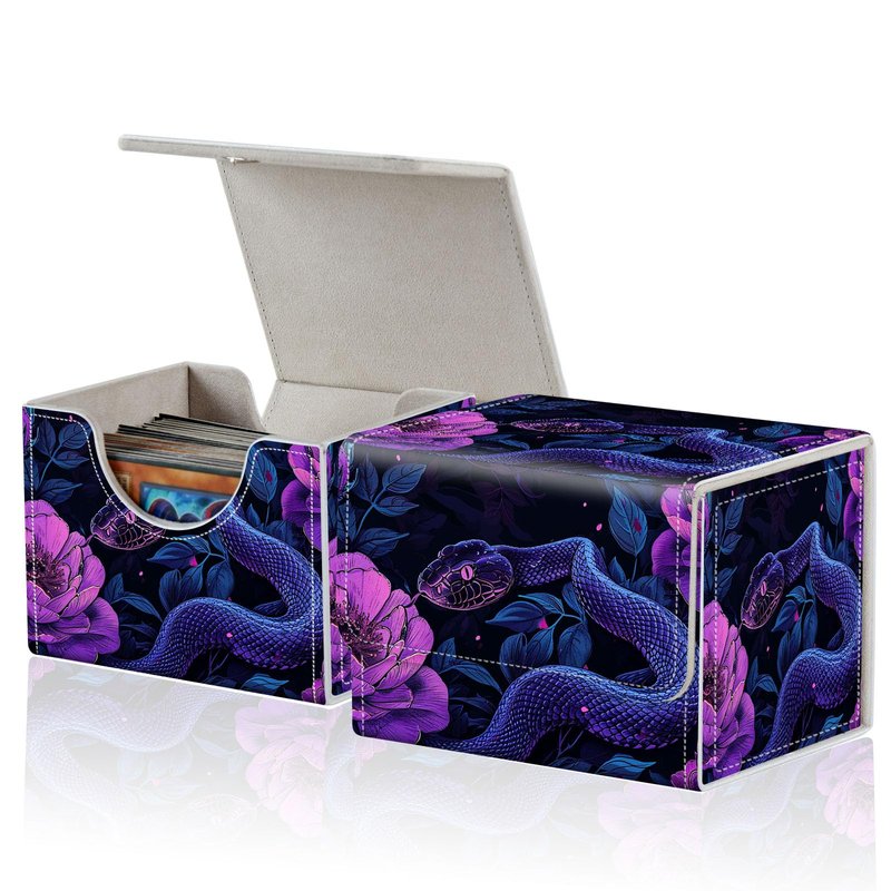 ACWDMKH for MTG Commander Deck Box,Card Deck Box for Trading Card Yugioh MTG Cards,Fits 100 Double Sleeved Cards,PU Leather Magnet TCG MTG Deck Case for Magic Commander Deck Box,Purple Snake Flower