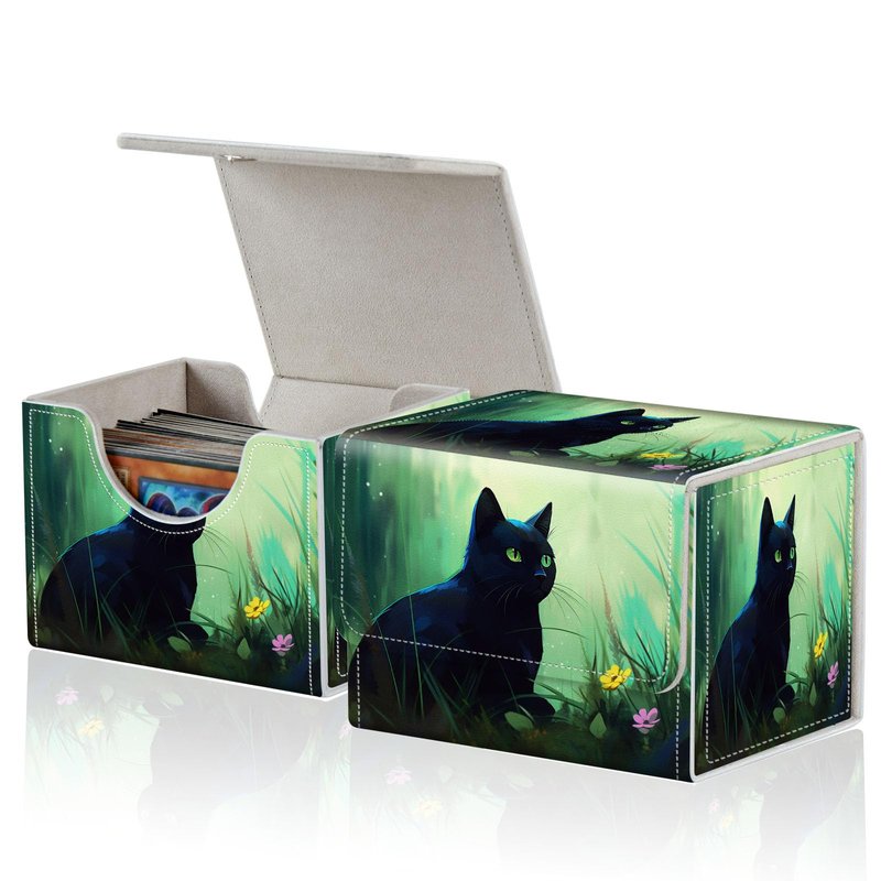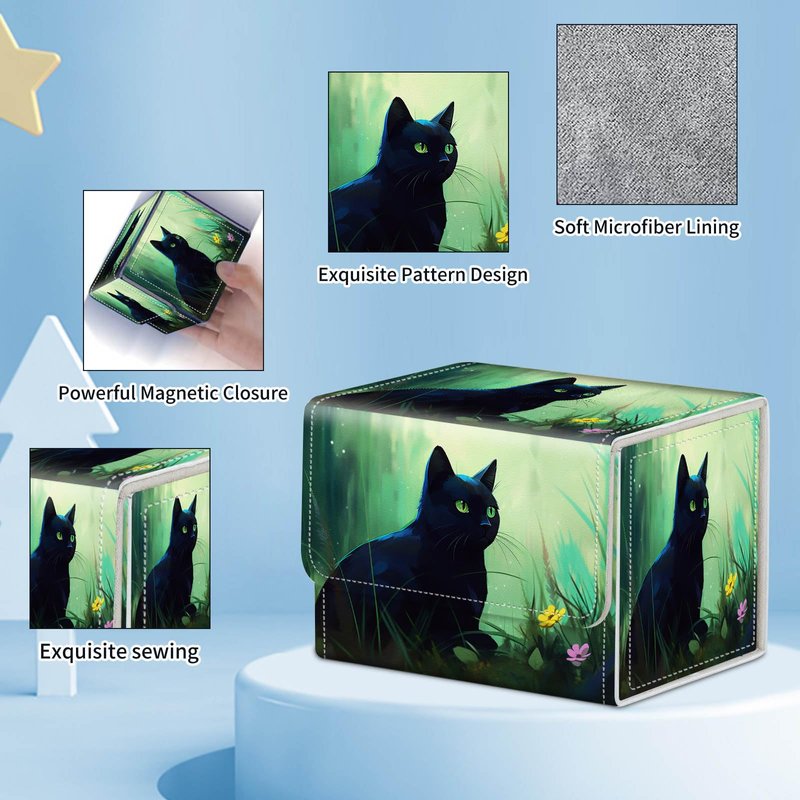 ACWDMKH for MTG Commander Deck Box,Card Deck Box for Trading Card Yugioh MTG Cards,Fits 100 Double Sleeved Cards,PU Leather Strong Magnet Card Deck Case for Magic Commander TCG CCG,Black Cat Forest