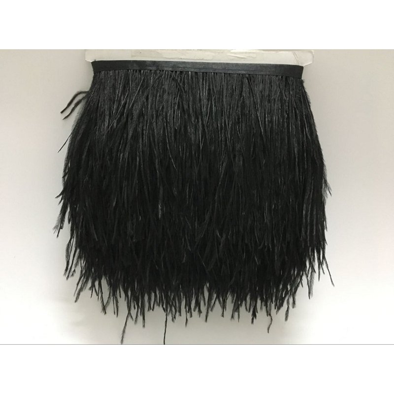 ADAMAI Natural Ostrich Feathers Trims Fringe DIY Dress Sewing Crafts Costumes Decoration Pack of 2 Yards (Black)