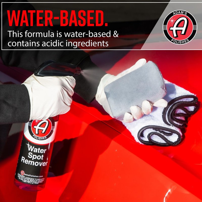 - ✅ Water-Based & Acidic Actives! We wanted to provide a water spot remover with professional strength chemistry and technology to take care of any water spot or hard water stains on your car, boat, motorbike and more. Works great on shower doors or in home appliances and surfaces where water spots may occur.
