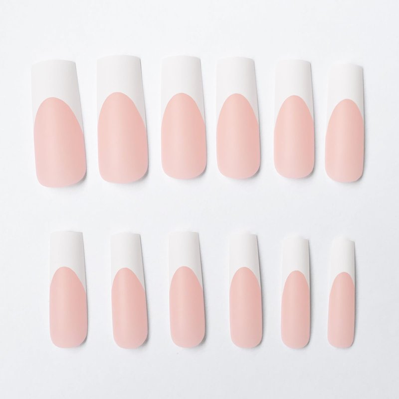 - Convenient square french tip nails: Nude french press nails long are packaged with a clear plastic case, long french tip press on fake nails are square shaped, long length full nails with black french design, no polish and painting needed, can meet all your different needs, whether you want at home nail care, DIY nails extensions, saving money on salon visitor, convenient for travel, which are perfect for any occasion