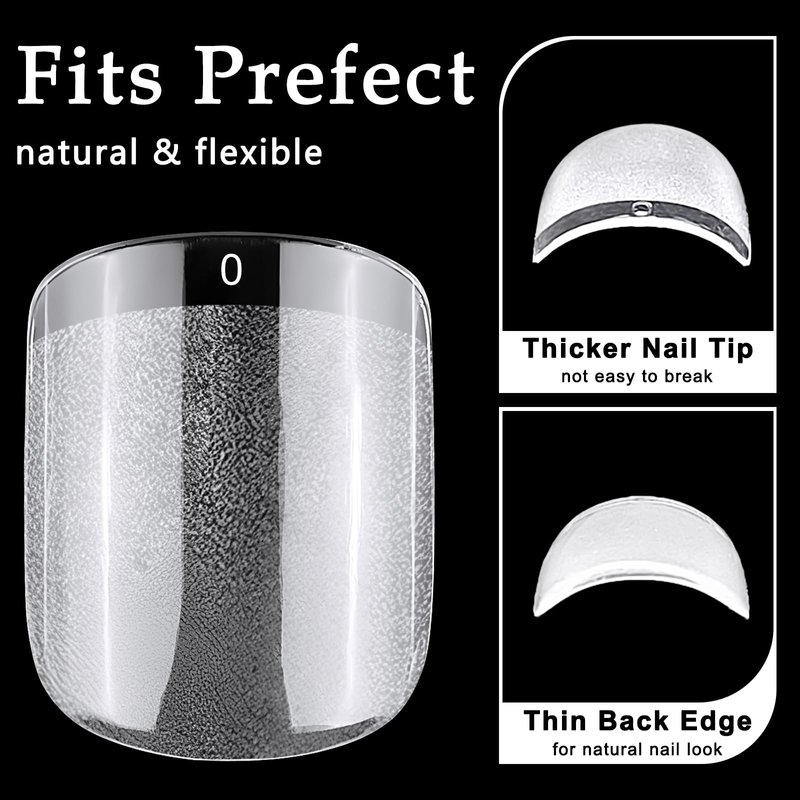 - Natural soft gel nail tips: square acrylic nail tips no need to file matte texture design, it's feature an inner matte texture and a thicker front edge and thinner back edge. Make full nail tips are comfortable to wear, and tight fit with your natural nails. Perfect short square shape nail tips, eliminates the need to polish the surface and shape