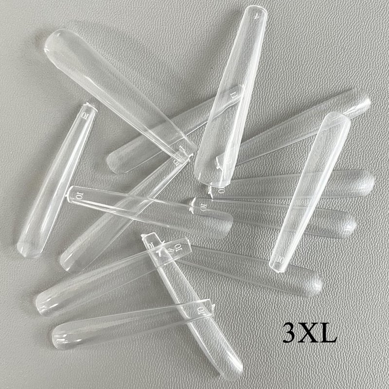 - Various size for choose, acrylic fake nail tips have 12 different sizes with 50 nails of each size numbered 0-11 individually in bags, so they're convenient to choose the most suitable size that fits your every finger whatever you have large nail bed or narrow finger. Size 0 length is 5.6cm