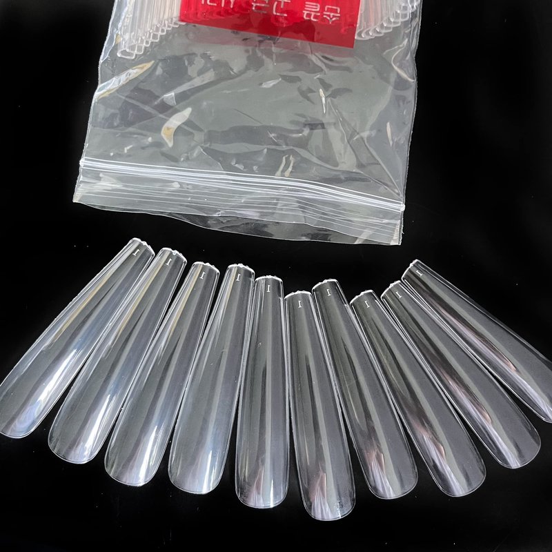 - Nail art beginner friendly, clear full coverage 3xxl long square fake nail tips are easy to use, just trim and polish your natural nails, apply glue on the back of the false nails, move along the nails to the bottom of the nails, and then press firmly on the nails about 10 seconds. After the nails are firmly fixed on the nails you can make DIY creations