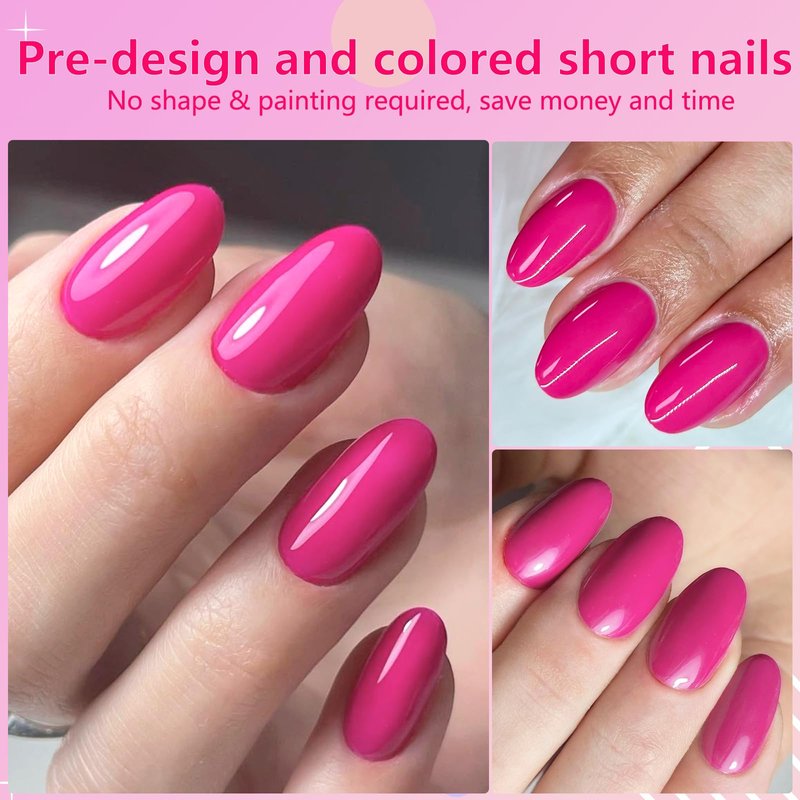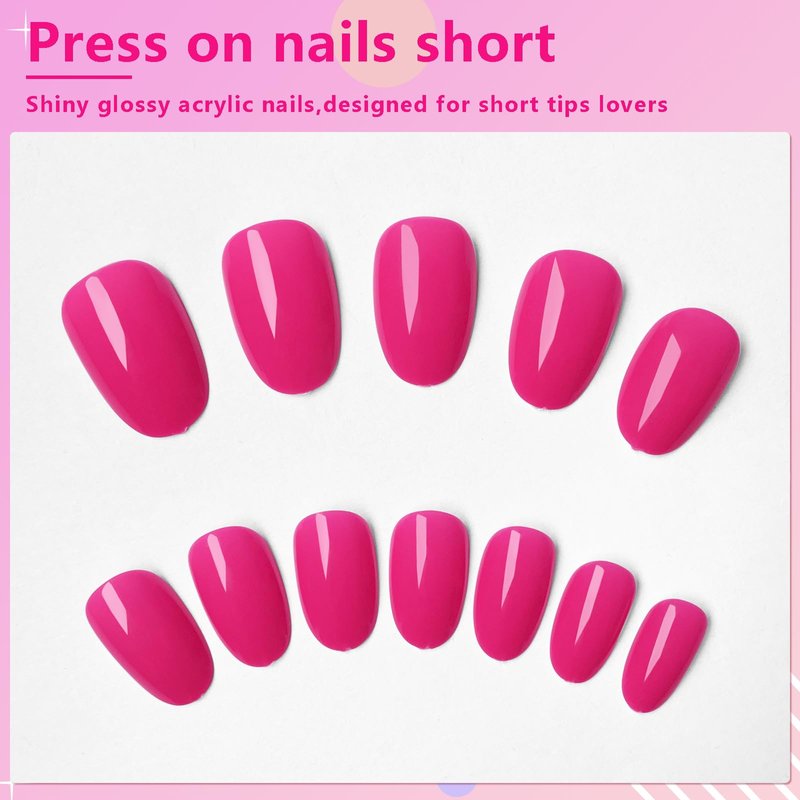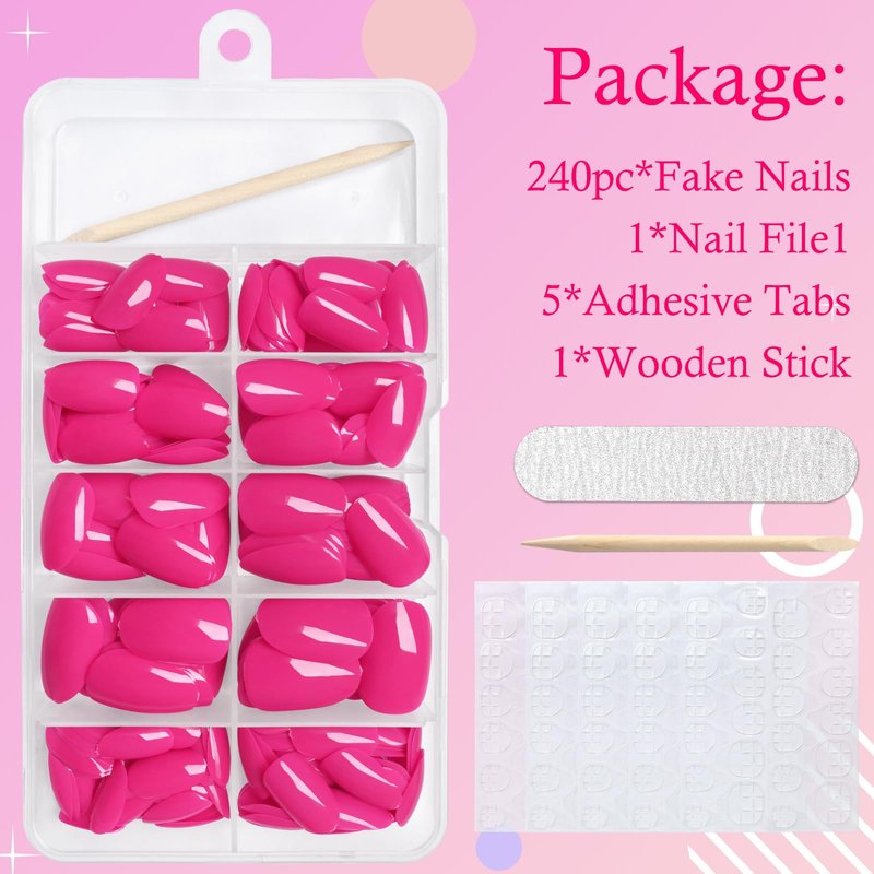 - Oval press on nails short kit: You will get 240pcs of short oval hot pink press on nails in 12 sizes, 5 sheets of adhesive tabs, 1 mini file, and 1 wooden stick. This is a great value press on nails pack for home nail art manicures. It contains everything you need for a press-on nail manicure, saving you money and time to achieve a salon effect at home