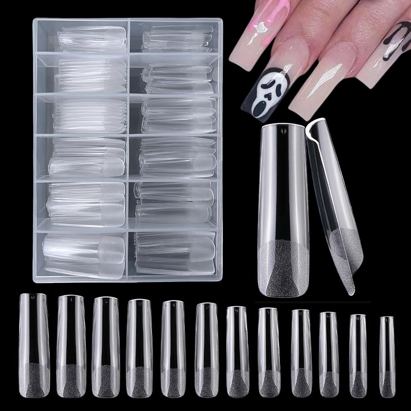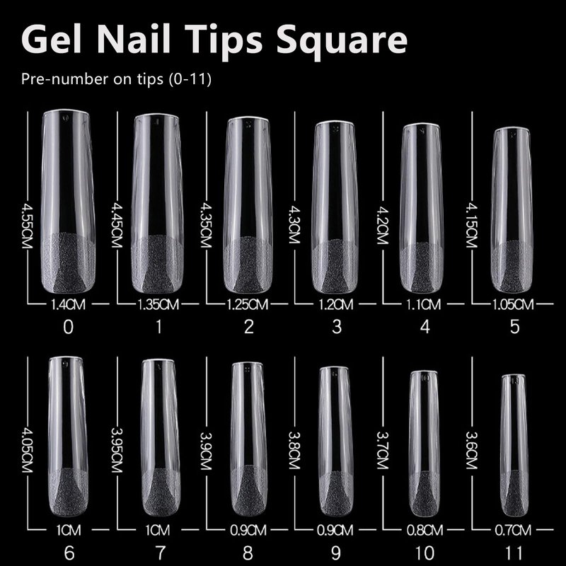 - Gel x Square Nail Tips: Come with 240pcs extra long square nail tips in 12 sizes(0-11), package in clear box. Easy to carry and convenient to choose the most suitable size that fits your every finger, whatever you have large nail bed or narrow finger