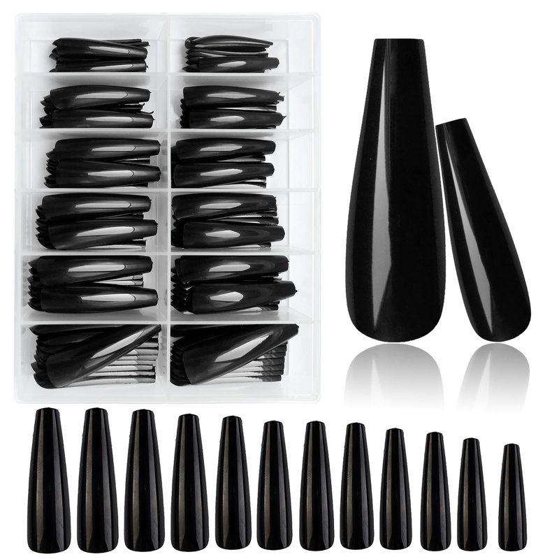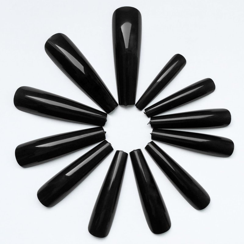 AddFavor XXXL Extra Long Press on Nails Coffin Glossy Black Fake Nails Full Cover Acrylic False Nails 12 Sizes 120pcs Nail Tips for Women Fingernails Manicure Design
