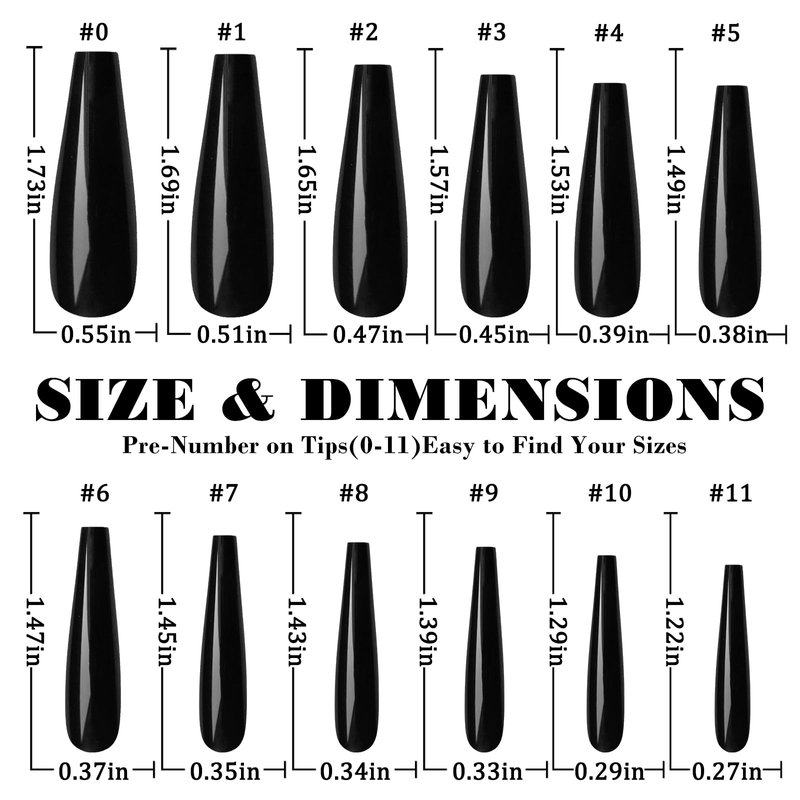- Various Sizes: There have 12 different size (0-11) for different fingers, 10 tips for each size. So they're easy to keep track of, and convenient to choose the suitable size that fits your fingernail, whatever big or small nail beds