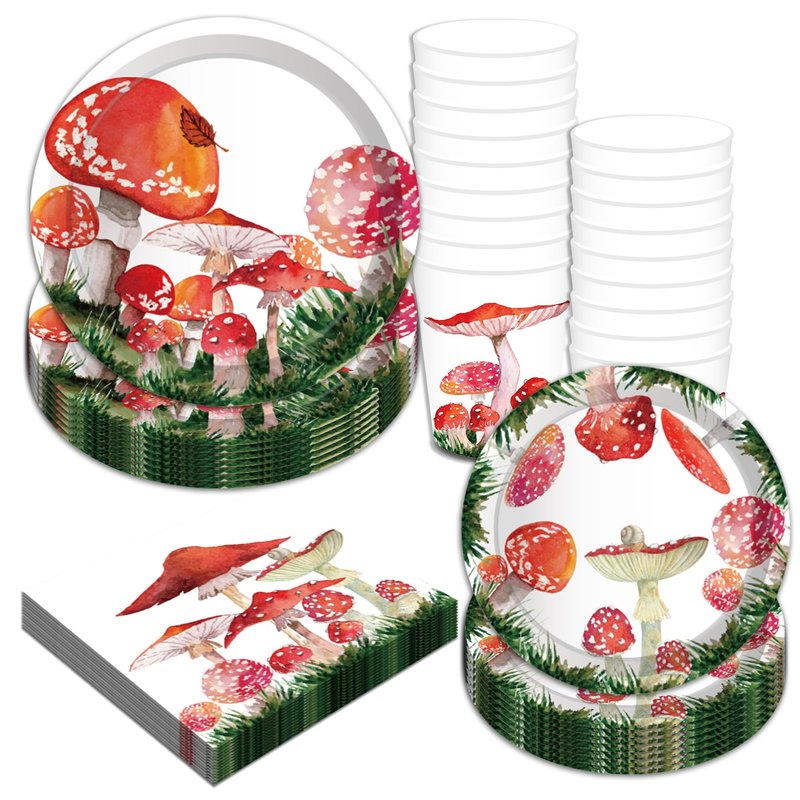 - Enjoy Mushroom Party: A one-stop solution for your party decorations. You will be able to throw a Mushroom party that impresses your guests. Mushroom party decorations decorate all corners of your party. Enjoy more time with your guests. This party pack contains all of your party tableware needs. can help you clean up easily after an event or party. save time and effortless, more time with family or friends enjoy the party