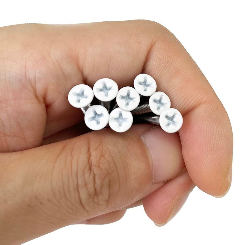 - White painted phillips countersunk screws, nicely match with white outlets, white sockets and other white electrical devices.