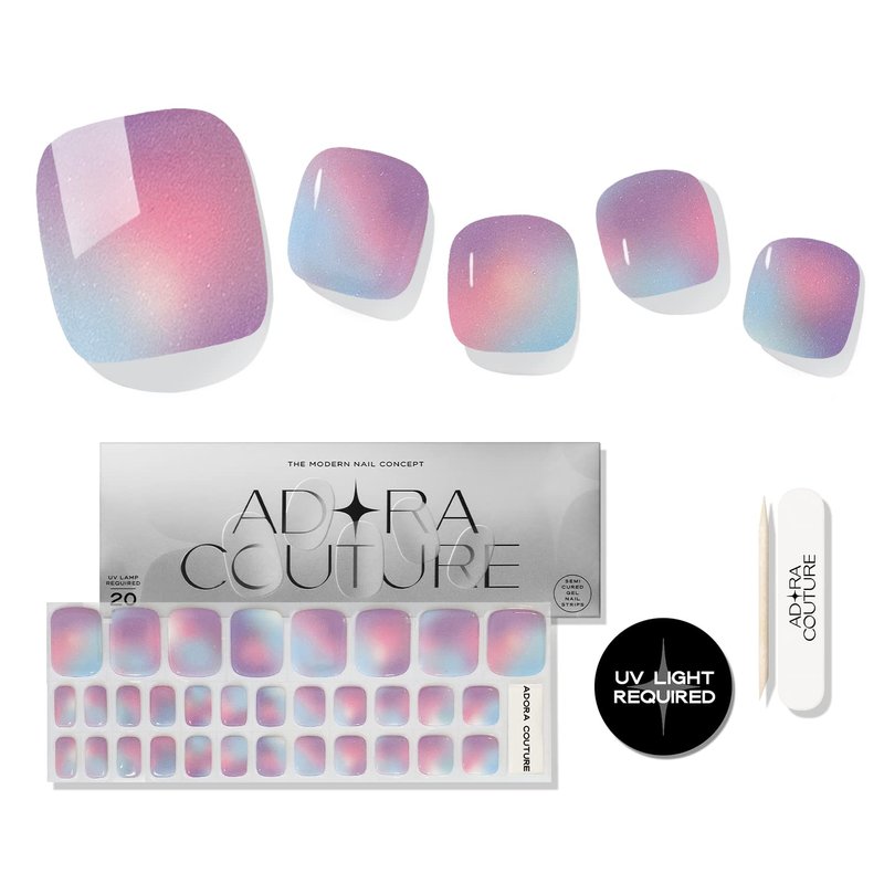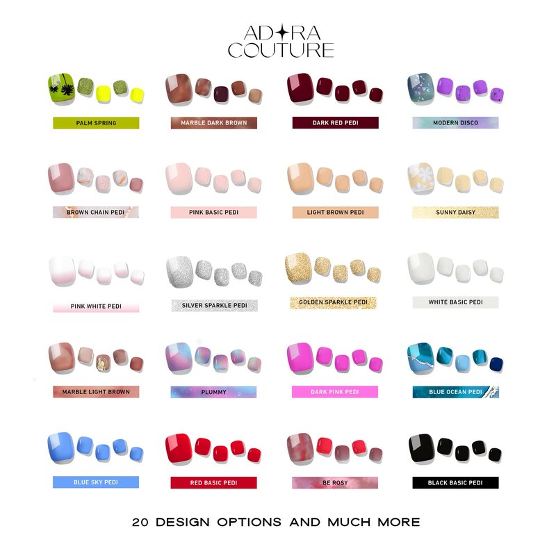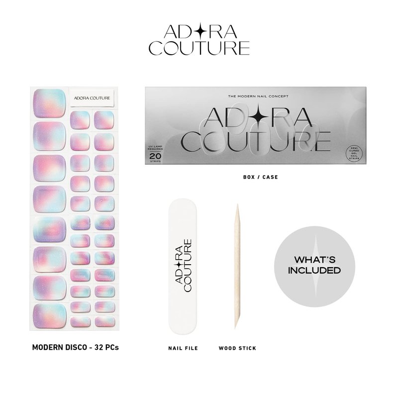Adora Couture Semi Cured Gel Nail Strips Pedicure Stickers |32pcs Glossy Toe Nail Stickers | Gel Nail Pedi Strips | Gel Nail Wraps Semi Cured | Salon Nails at Home - Requires UV Light (ModDisco P)