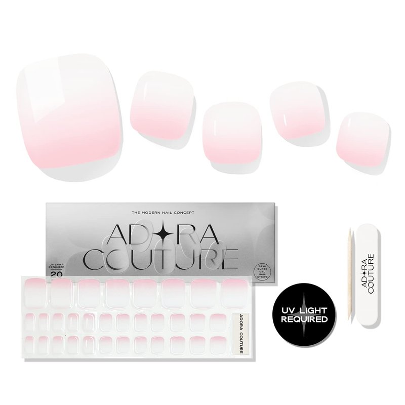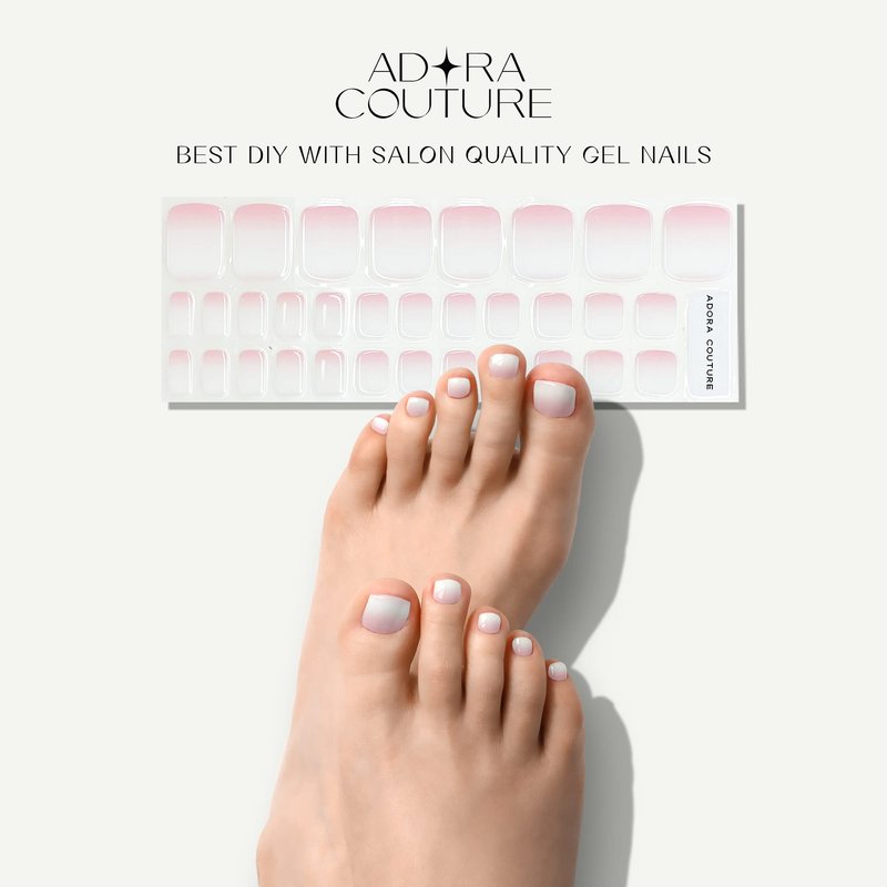 Adora Couture Semi Cured Gel Nail Strips Pedicure Stickers | 32pcs Glossy Toe Nail Stickers | Gel Nail Pedi Strips | Gel Nail Wraps Semi Cured | Salon Nails at Home - Requires UV Light (Pink White P)